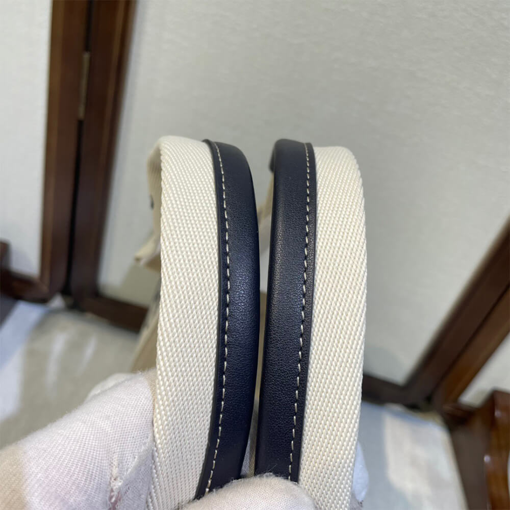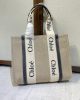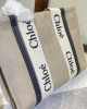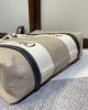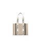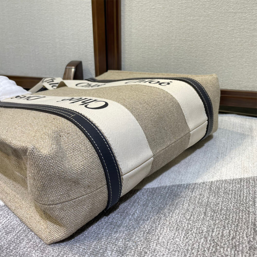 Tote bag in linen canvas & shiny calfskin with Woody ribbon